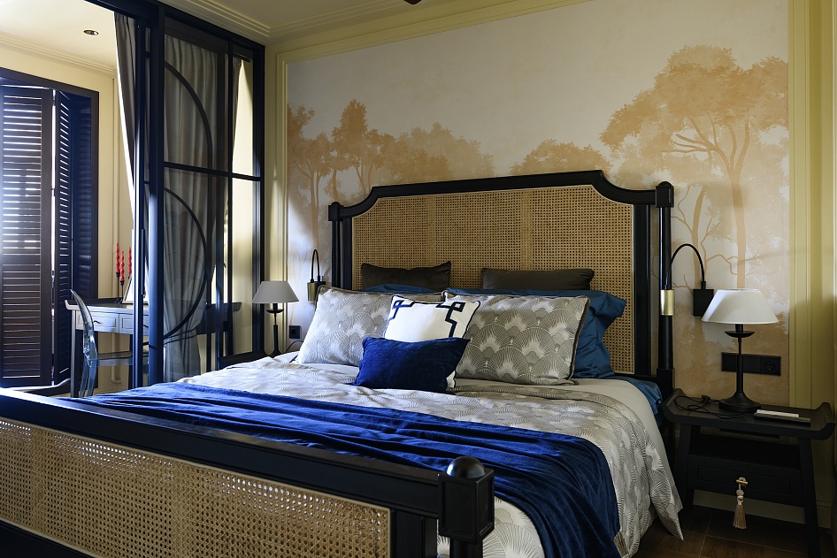 Комнату разделили на три функциональные зоны: спальная зона, будуарная зона и рабочее пространство на лоджии.