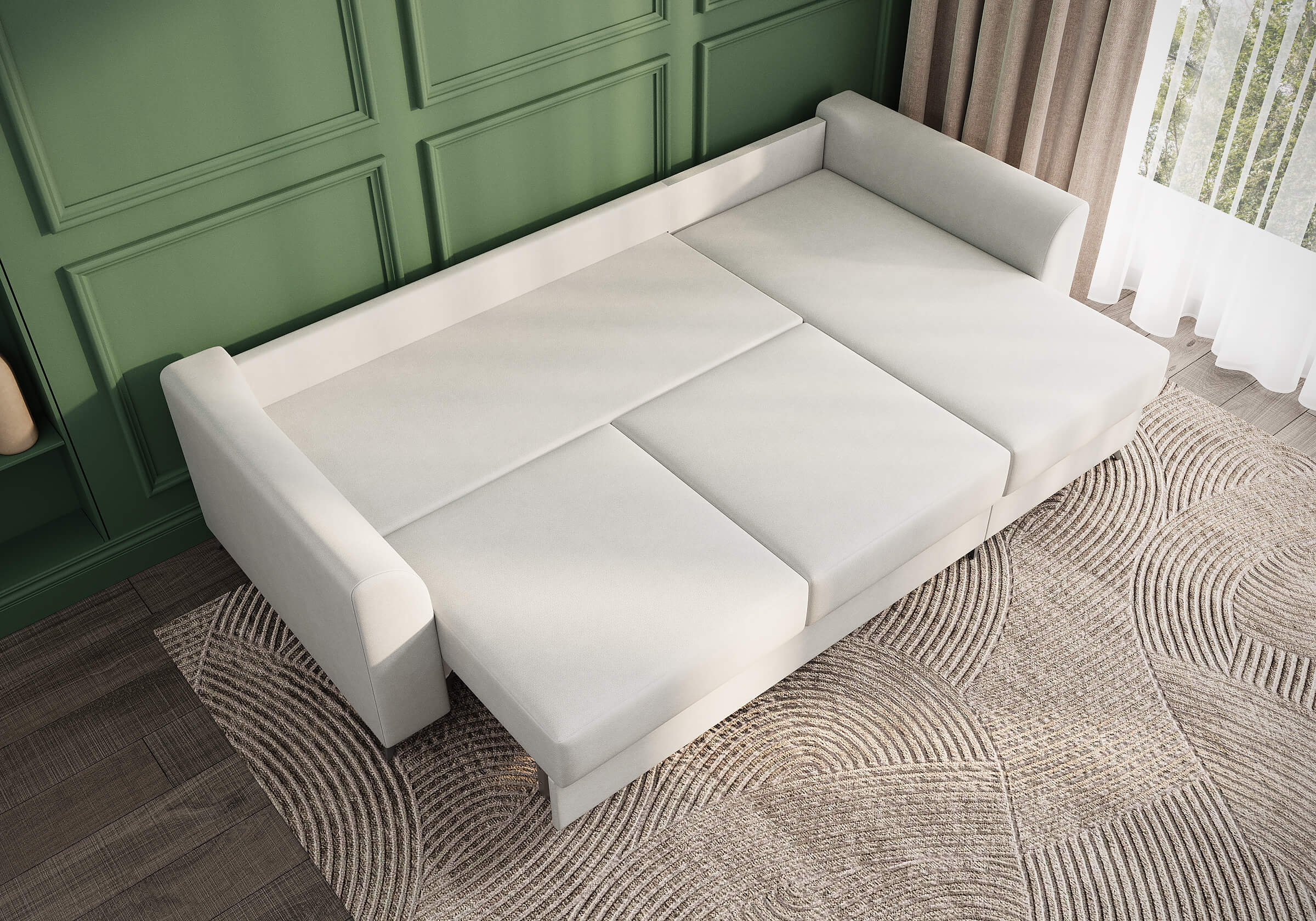 Угловой диван Dario — это сочетание лаконичного дизайна, продуманной эргономики и непревзойденного комфорта. Плавные линии, дизайнерские подлокотники и стильные металлические ножки создают выразительный силуэт, который станет ключевым элементом гостиной. Универсальная конструкция позволяет собрать конфигурацию под ваше пространство — левую или правую. Диван не только красив, но и практичен: независимый пружинный блок в сочетании с высокоэластичной пеной в составе матраса обеспечивает комфортное место для сна и отдыха. Глубина и высота сидений гарантируют удобство в повседневной эксплуатации. Вместительный бельевой короб позволяет эффективно использовать пространство и хранить постельные принадлежности или другие вещи. Практичная обивка и продуманная высота спинки защитят стены, сохраняя безупречный вид вашего интерьера.