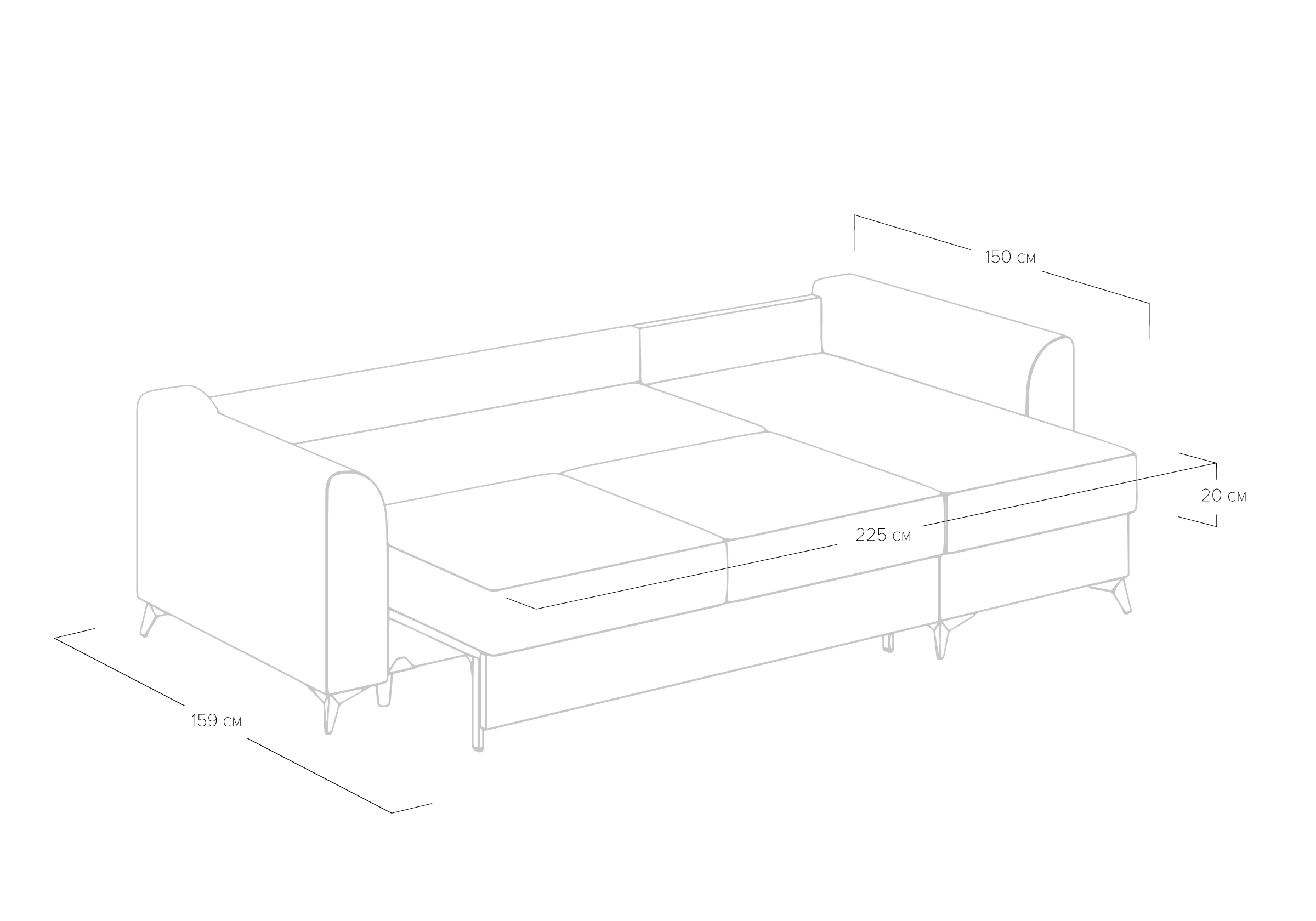 Размер спального места 150*225