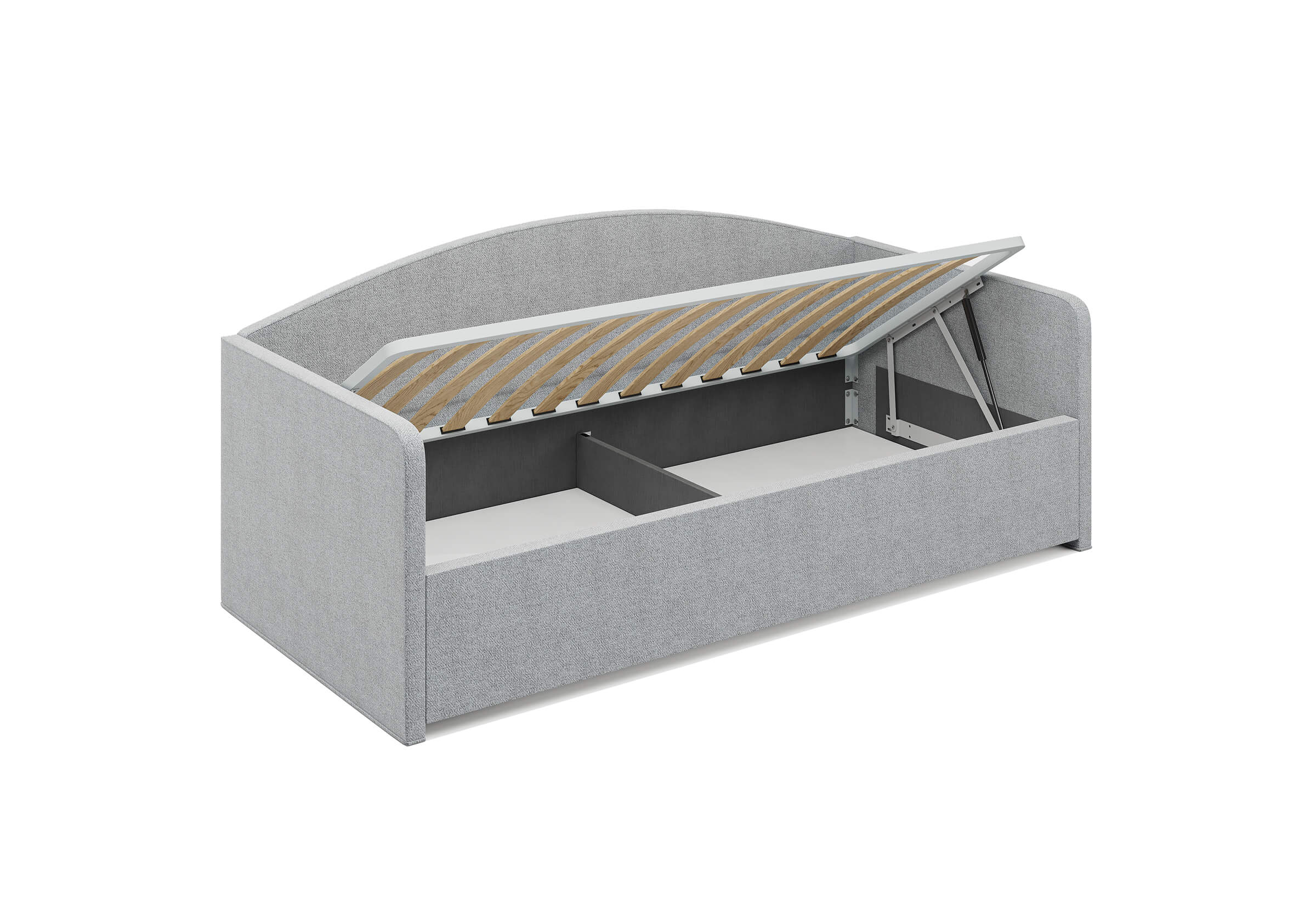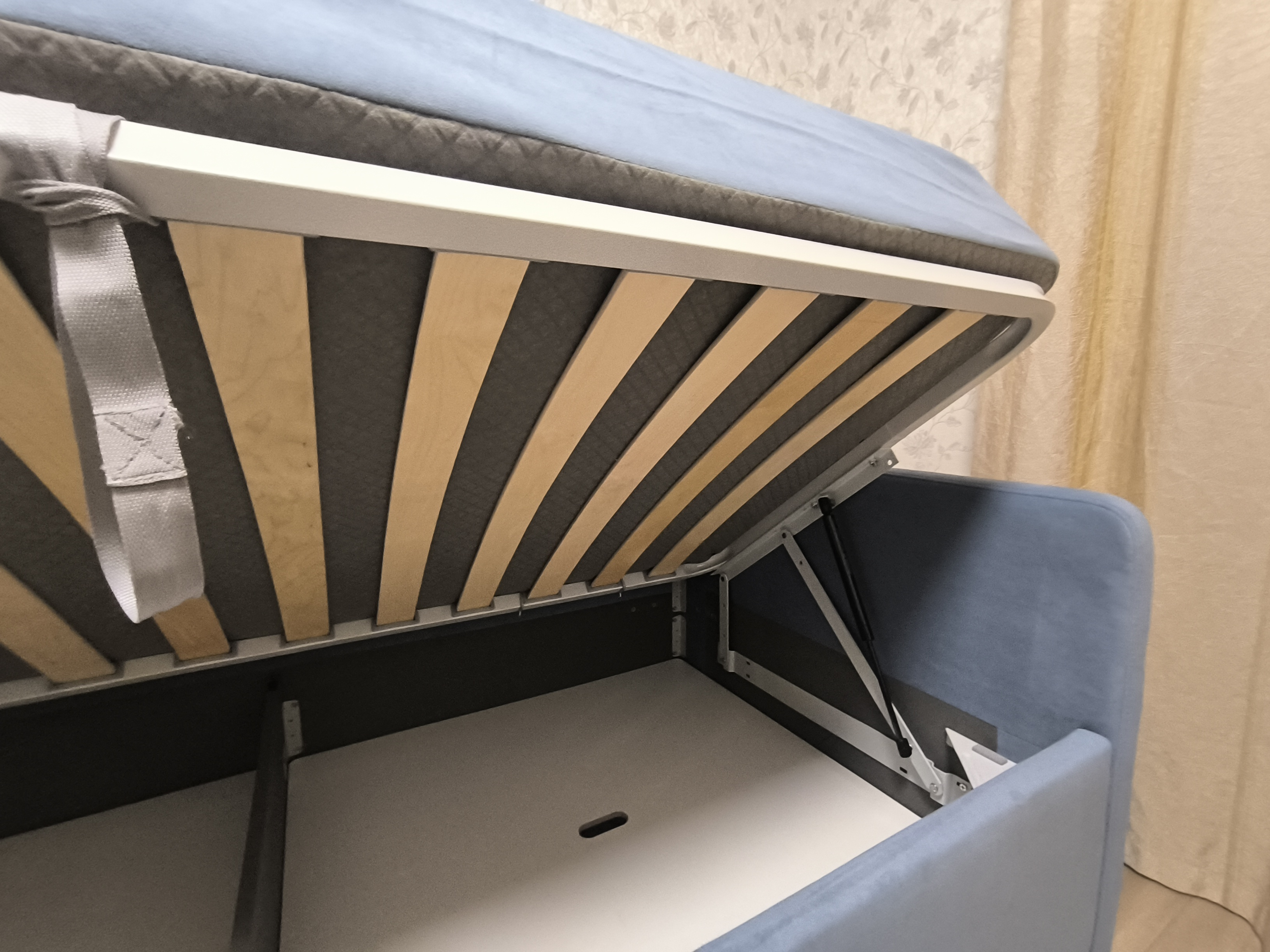 Возможна установка подъемного механизма со вместительным бельевым ящиком. Дно бельевого ящика легко сдвигается для обеспечения уборки под кроватью.