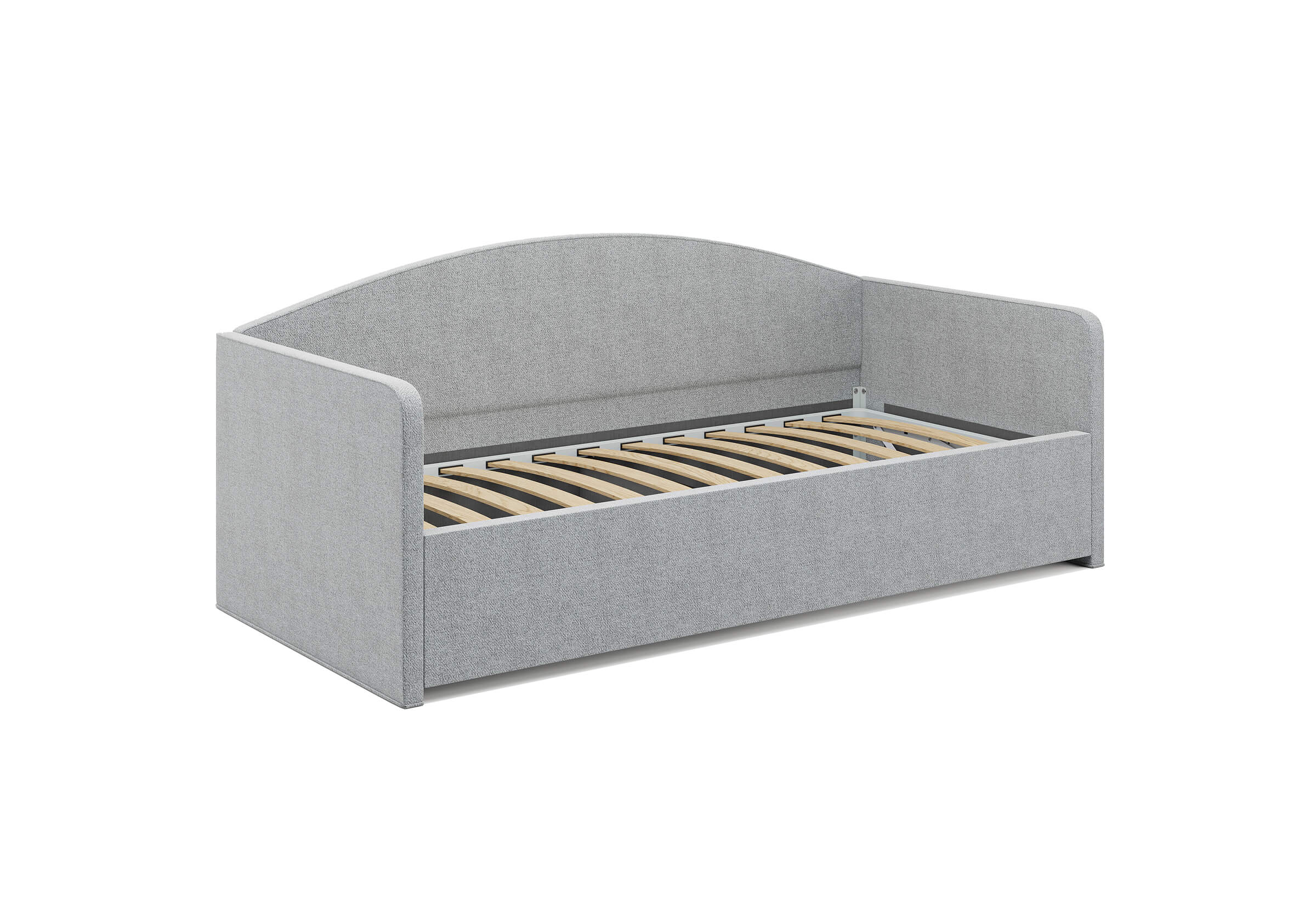 Недорогая односпальная кровать для ребенка или подростка. Модель изготовлена из ДСП. При необходимости кровать может быть укомплектована разборным или неразборным металлическим основанием с ламелями, подъемным механизмом с бельевым ящиком.