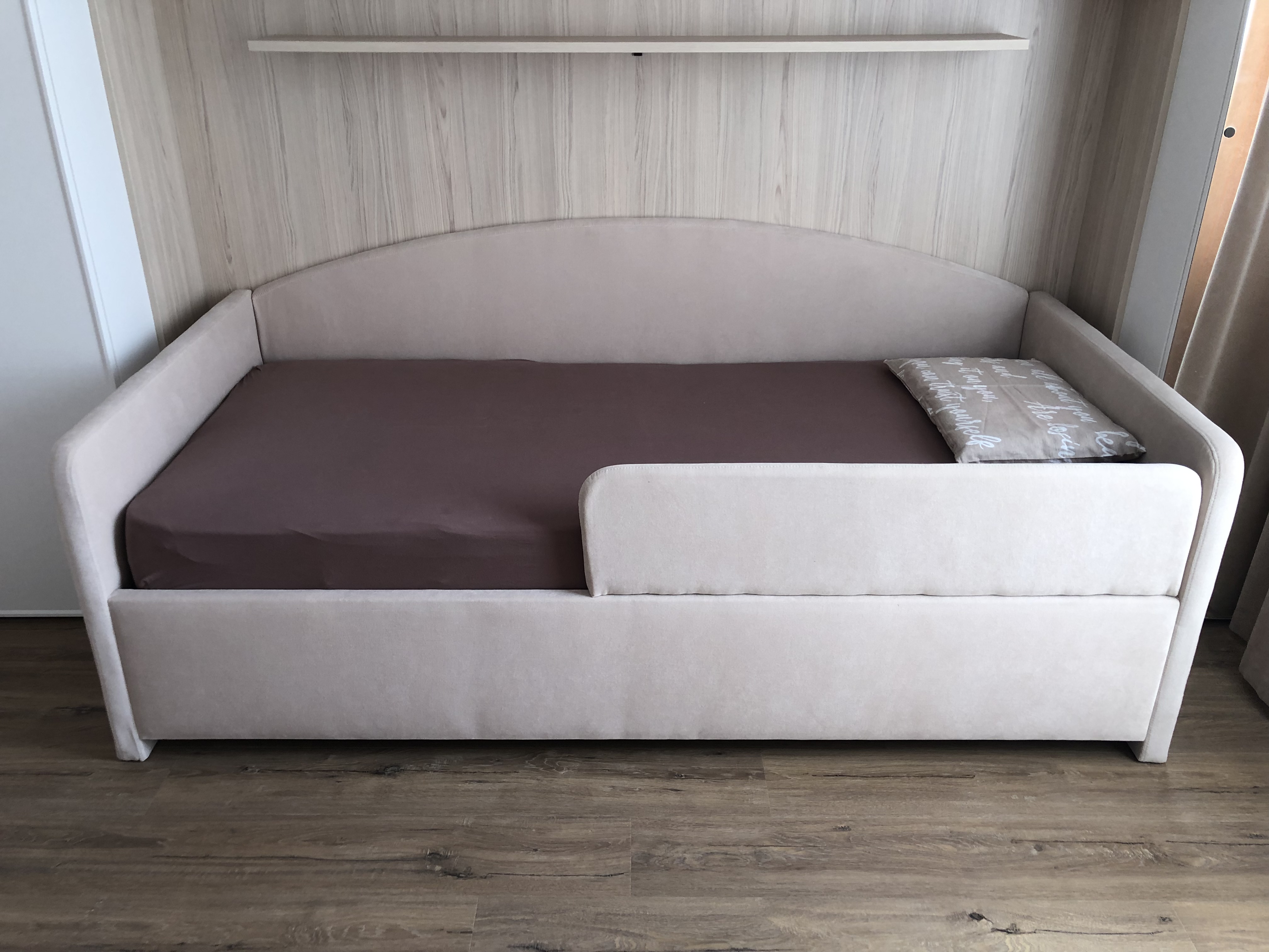 Огромное спасибо производителю за эту кровать. Красивая, удобная, вместительная и современная. Заказали кровать размером 90х190 с подъёмным механизмом и ящиками для хранения. Так же заказали матрас с чехлом под цвет кровати и декоративные подушки. Дочь в восторге.