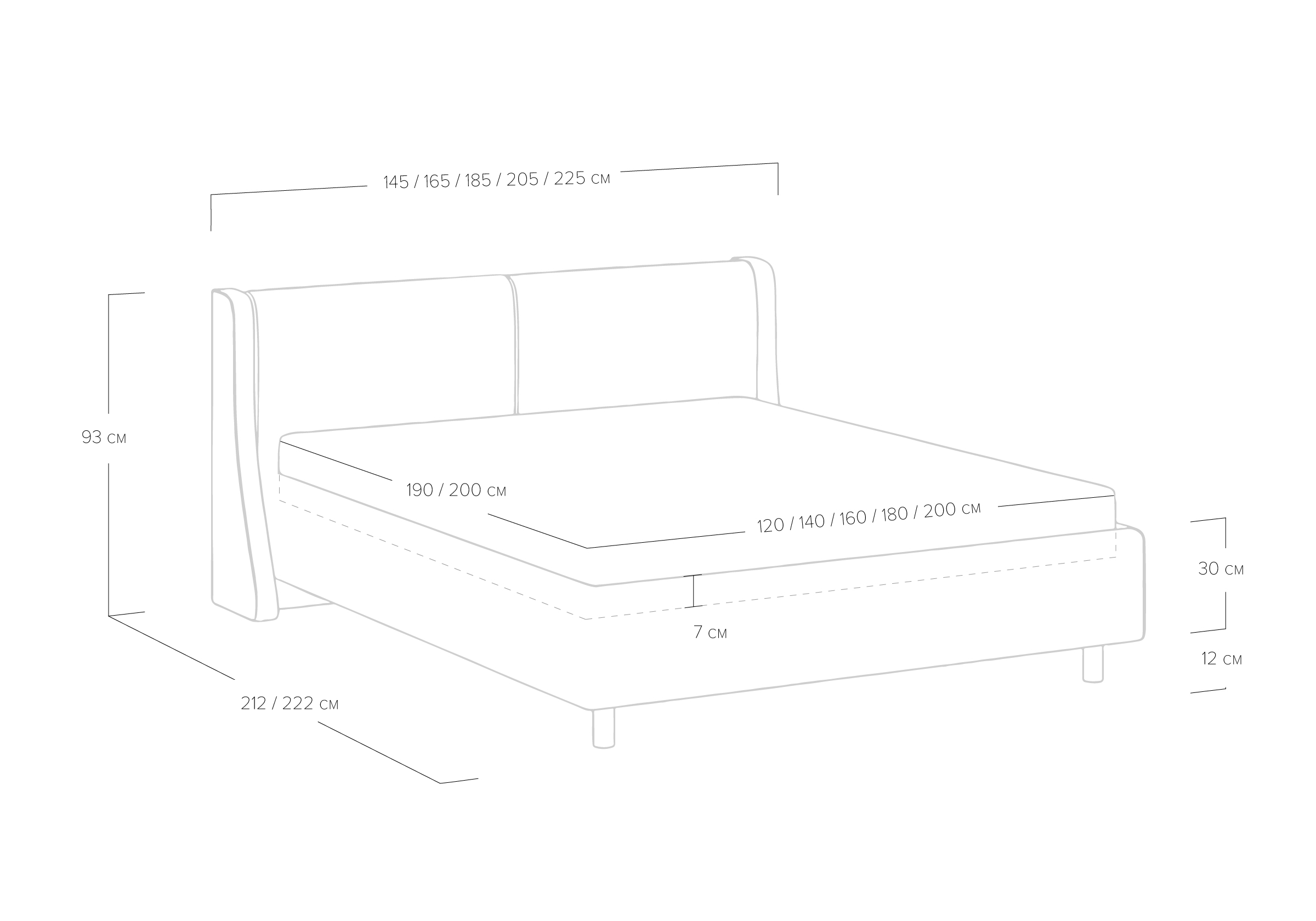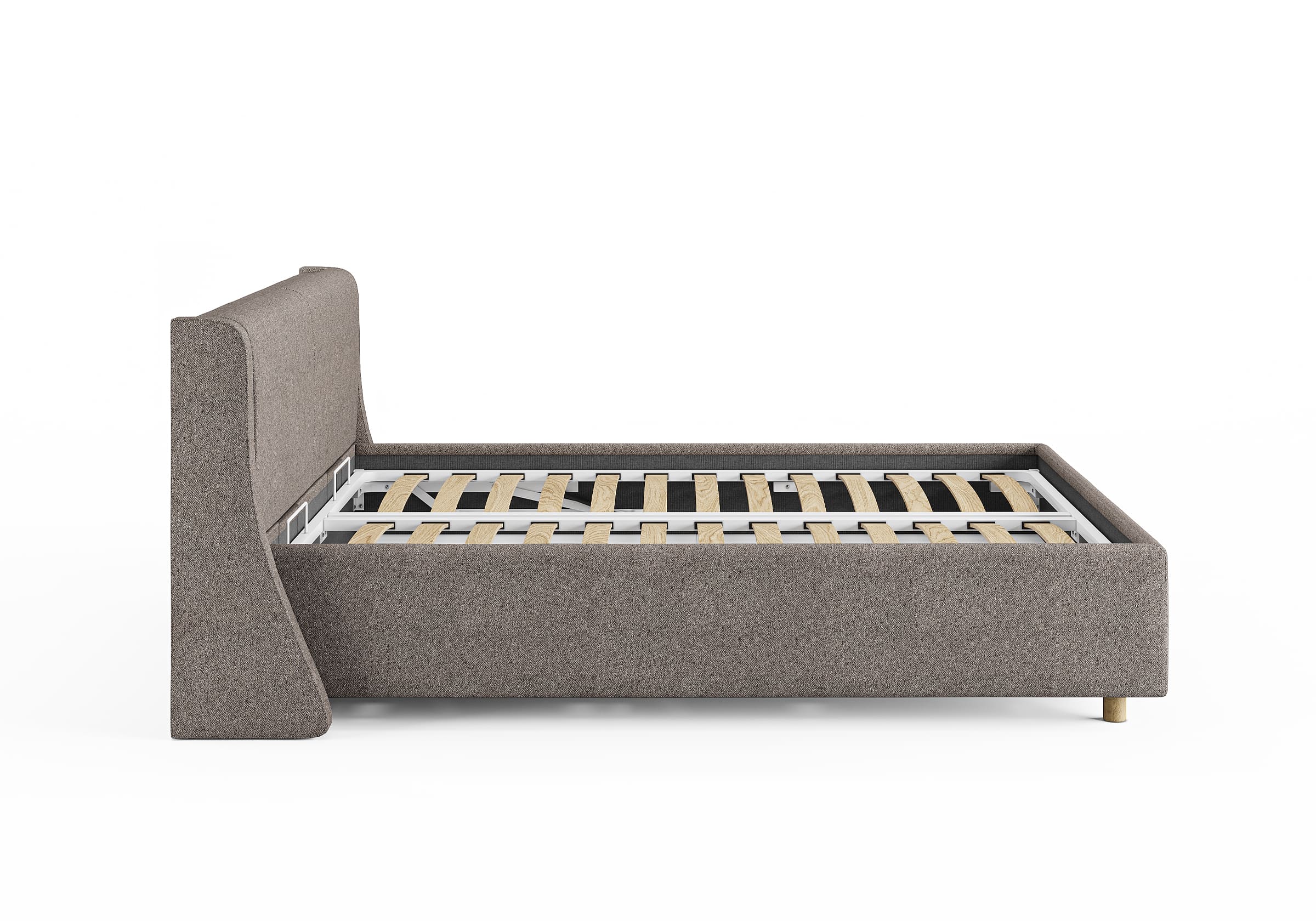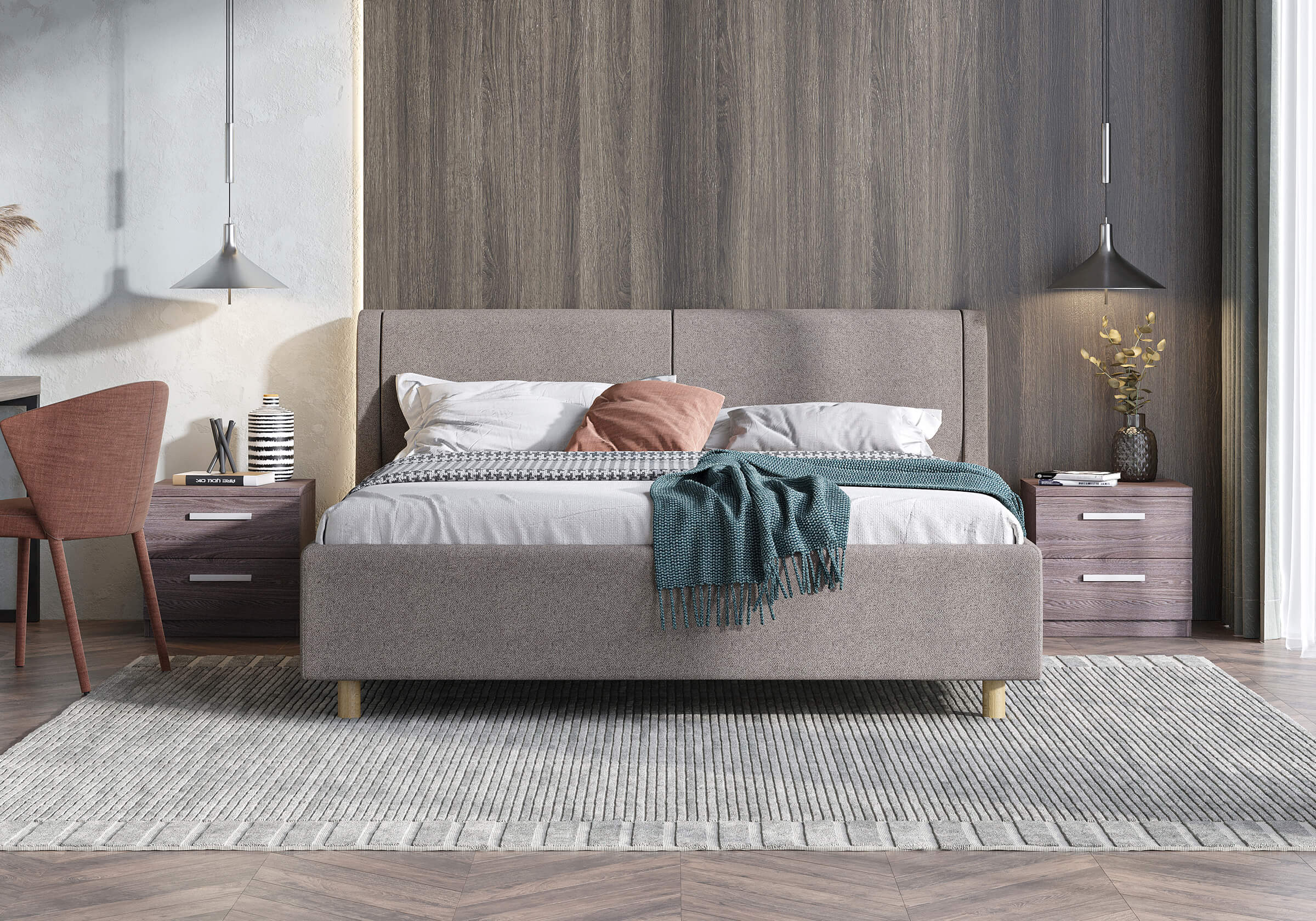 Кровать Barcelona подойдет для современных интерьеров спален, а благодаря деревянным ножкам впишется в стиль ретро, скандинавский или минимализм. При необходимости кровать может быть укомплектована разборным или неразборным металлическим основанием с ламелями, подъемным механизмом с бельевым ящиком, трансформируемым основанием Aquarius (размером 160-200).