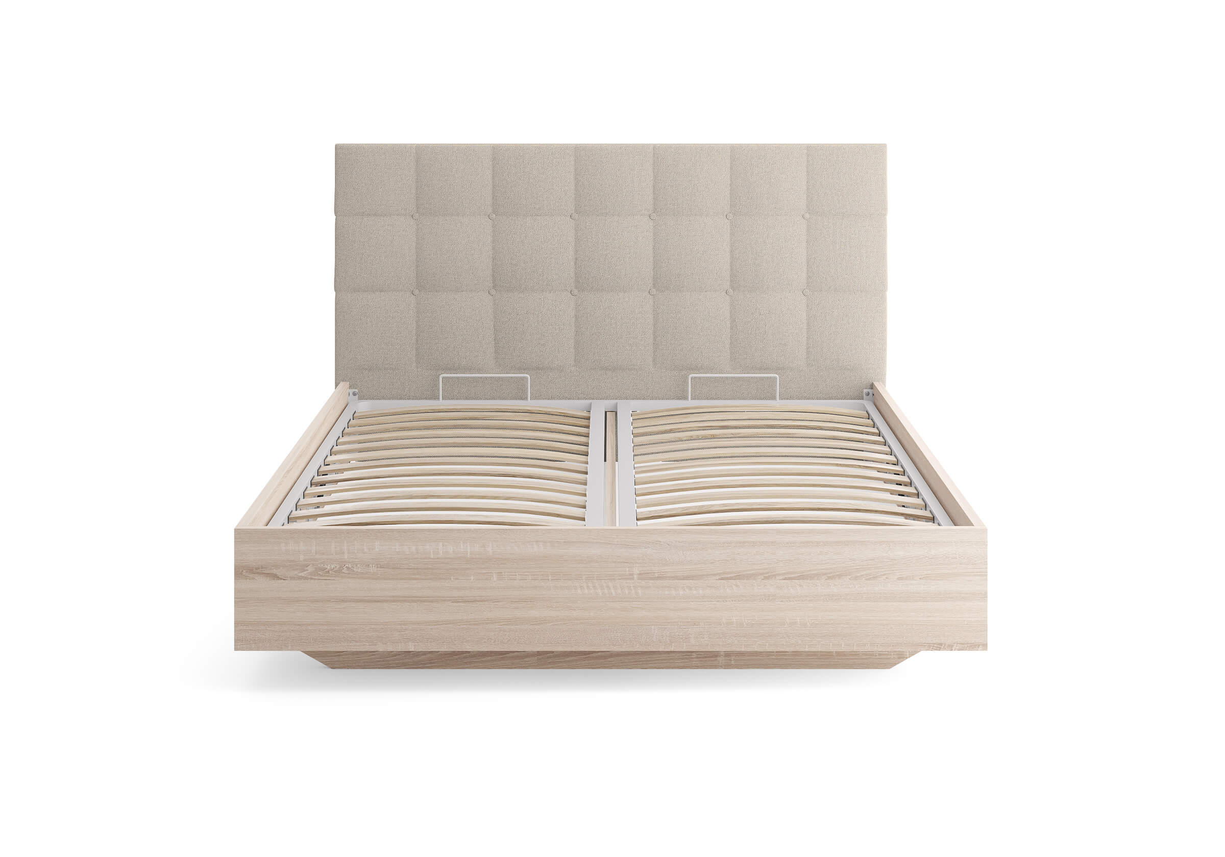 Возможность установки подъемного механизма со вместительным бельевым коробом, 13 см глубиной. Дно бельевого ящика легко сдвигается, что позволяет просто убраться под кроватью.