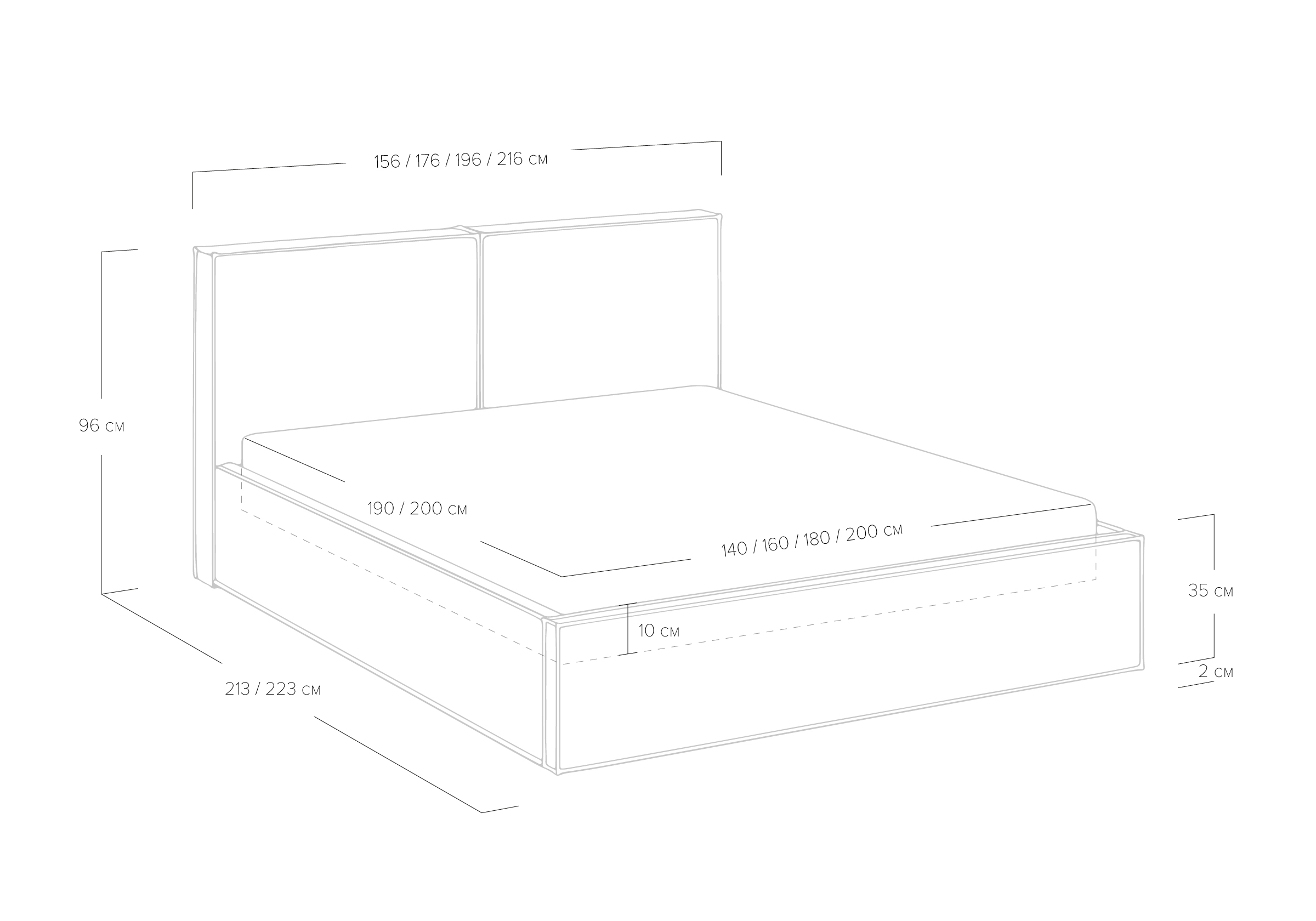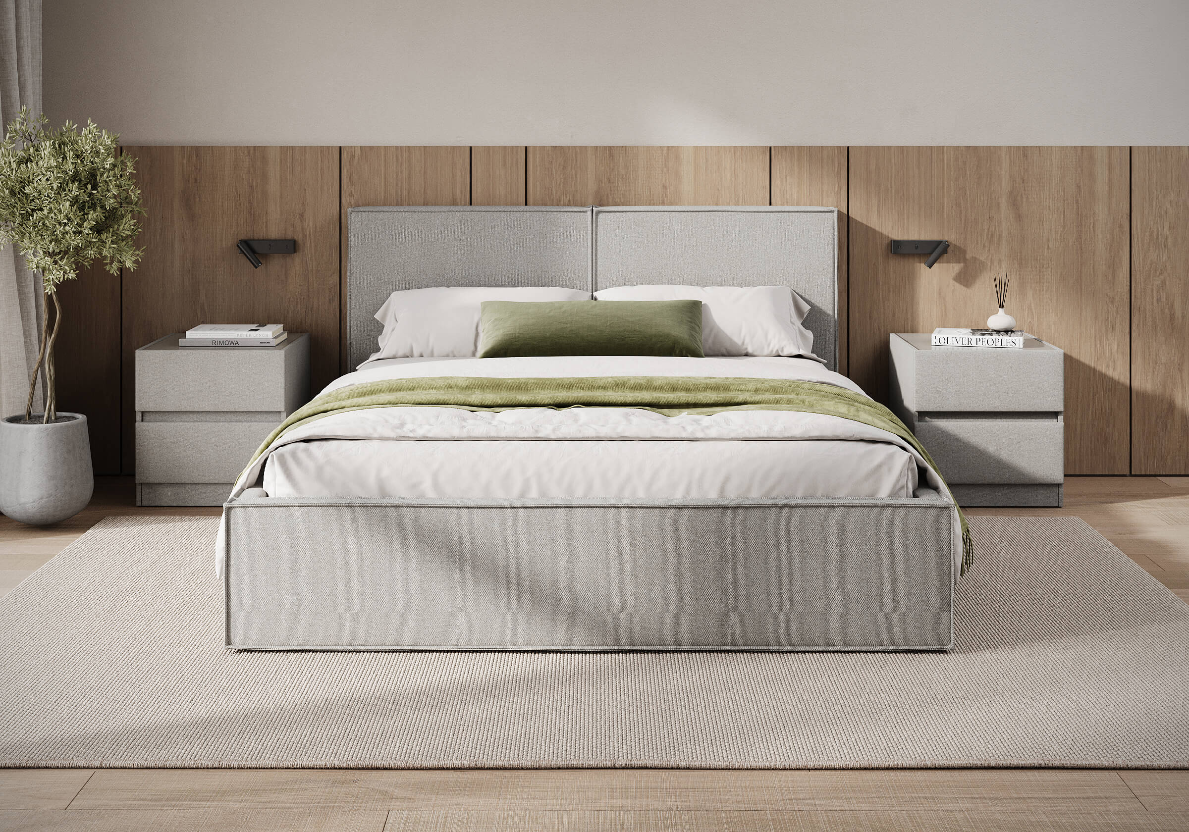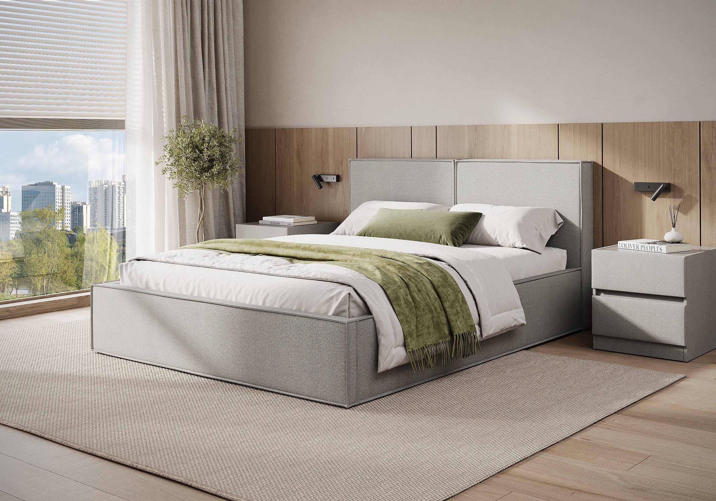 Кровать Nevada идеальный выбор для тех, кто ценит чистые линии, функциональность и тихую эстетику. Её дизайн сочетает в себе строгий лофт-стиль с современными решениями, не перегружая пространство, но при этом делая его уютным. При необходимости кровать может быть укомплектована разборным или неразборным металлическим основанием с ламелями, подъемным механизмом с бельевым ящиком или трансформируемым основанием Aquarius.