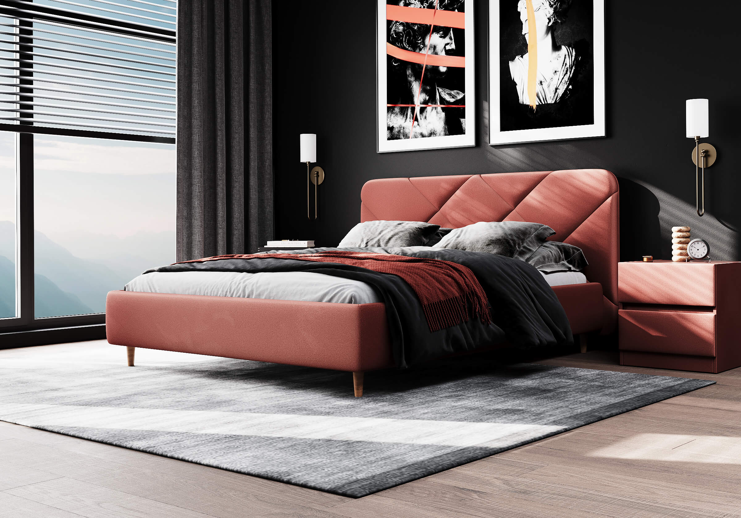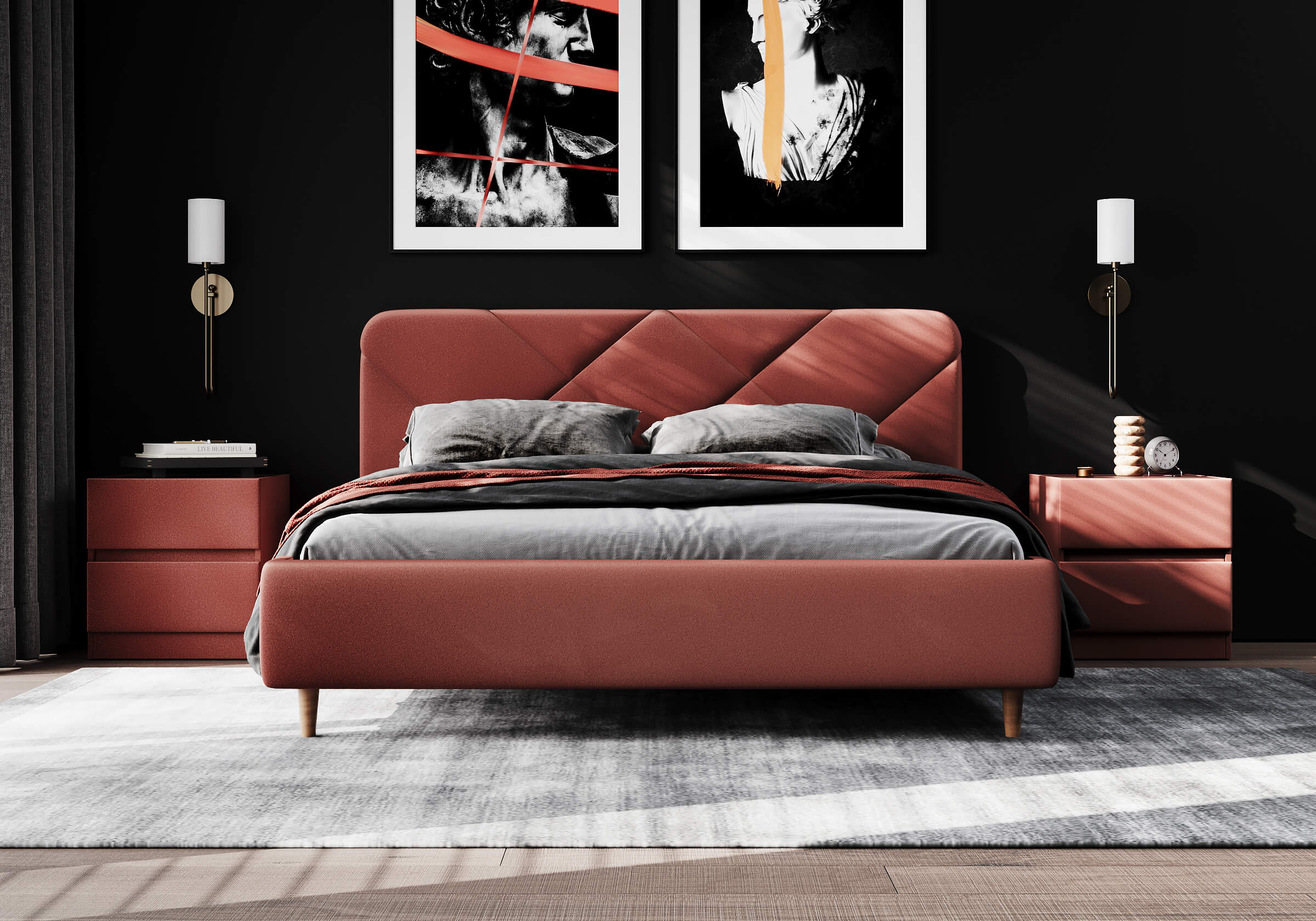 Кровать Taylor выглядит эффектно благодаря изголовью со стежкой в виде крупного абстрактного рисунка. Закругленные углы, объем и мягкость изголовья создадут в вашей спальне атмосферу релакса и уюта. Благодаря высоким опорам из натурального дерева, модель будет смотреться актуально в интерьерах в скандинавском и современном стеле. При необходимости кровать может быть укомплектована разборным или неразборным металлическим основанием с ламелями, подъемным механизмом с бельевым коробом.