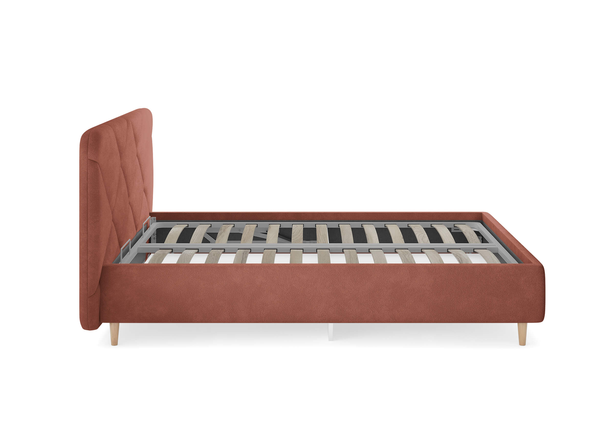 Основание кровати на деревянных ножках. Благодаря увеличенной высоте позволяют осуществлять легкую уборку под кроватью, даже с помощью робота-пылесоса.