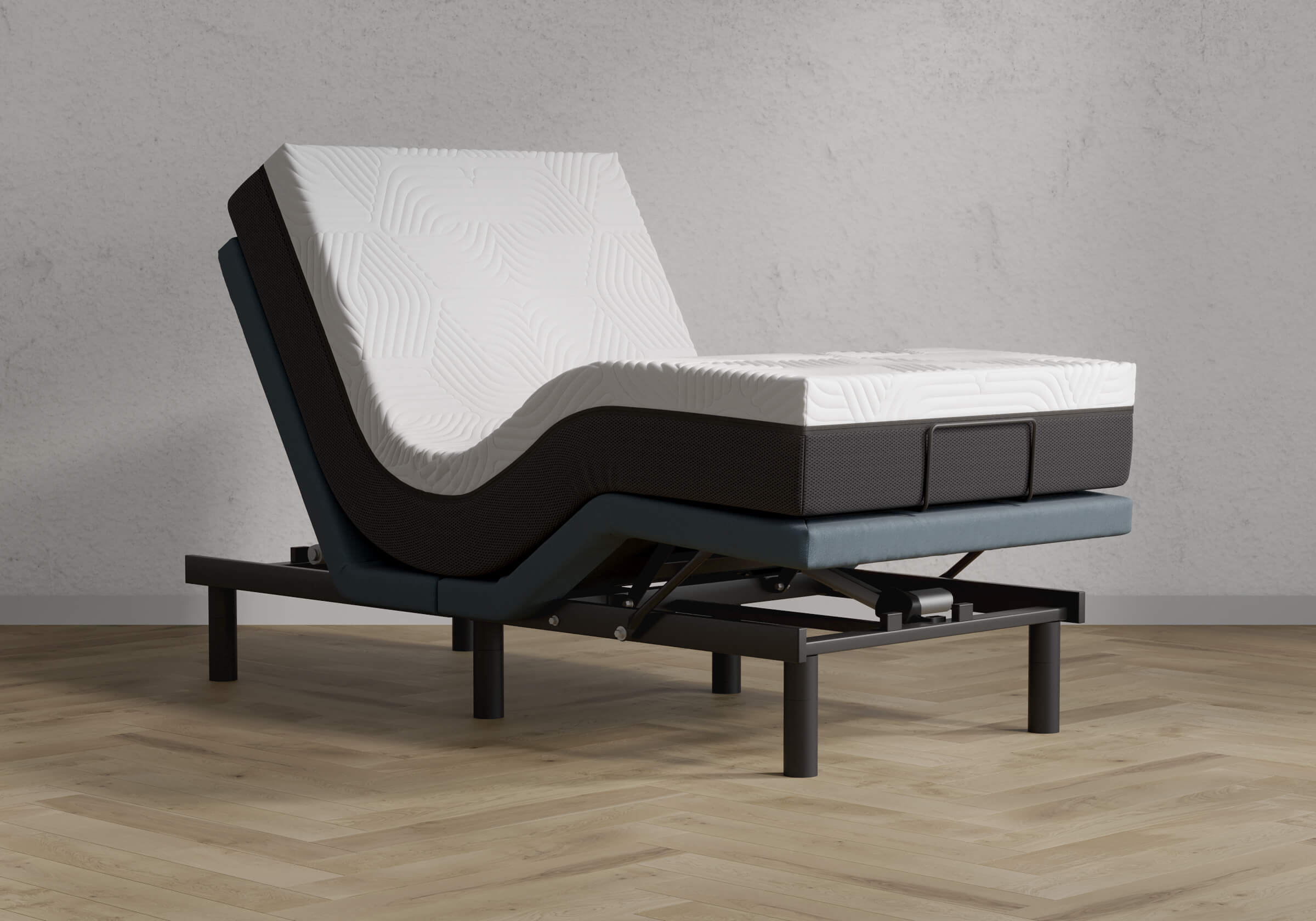 Опоры основания состоят из 2-х частей и регулируются по высоте 15 и 22 см. Благодаря этому основание можно установить практически в любую кровать.