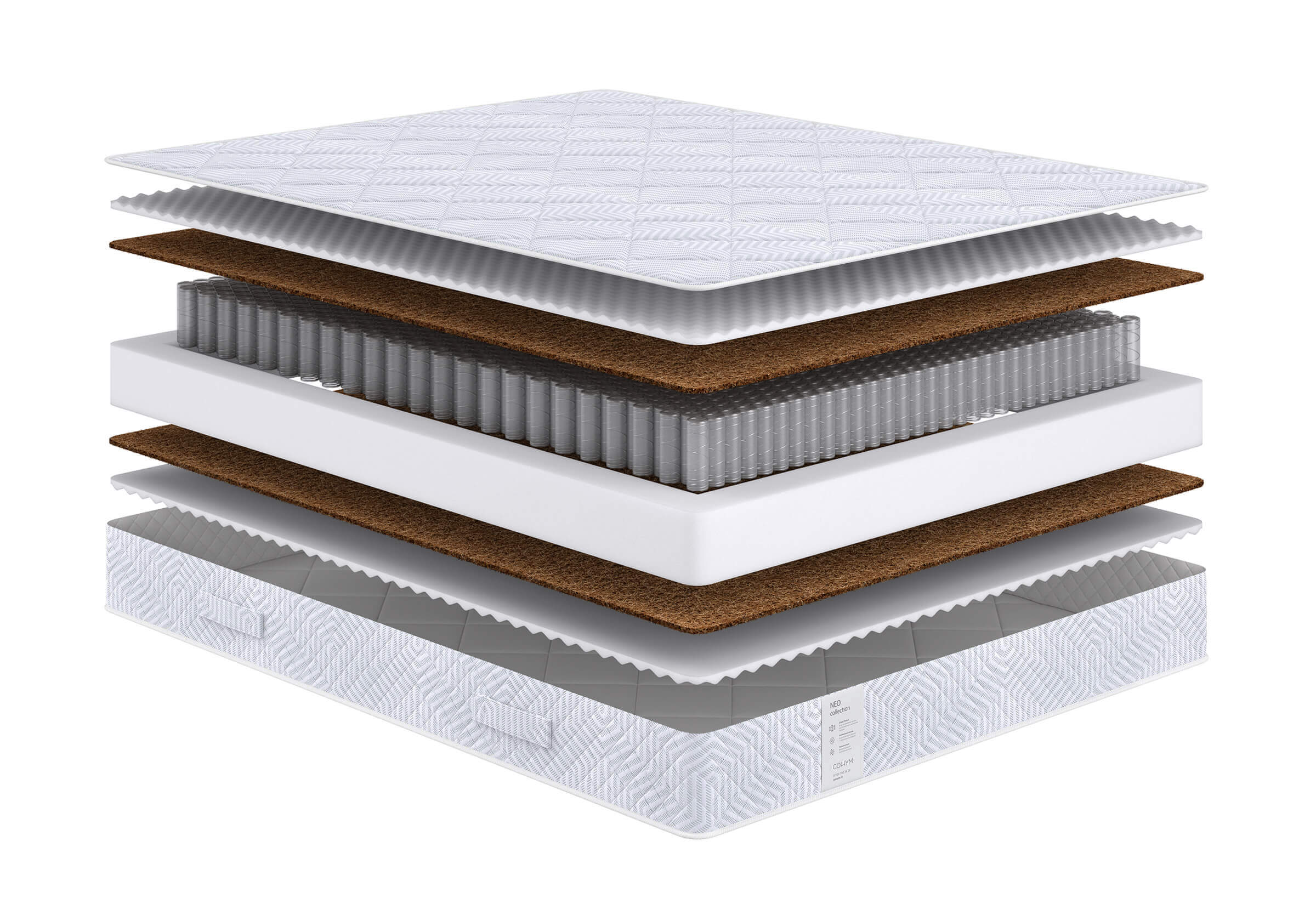 Природный натуральный материал. Состоит из волокон ореха кокосовой пальмы, пропитанных составом из натурального латекса. Гипоалергенен, обеспечивает циркуляцию воздуха и теплообмен.