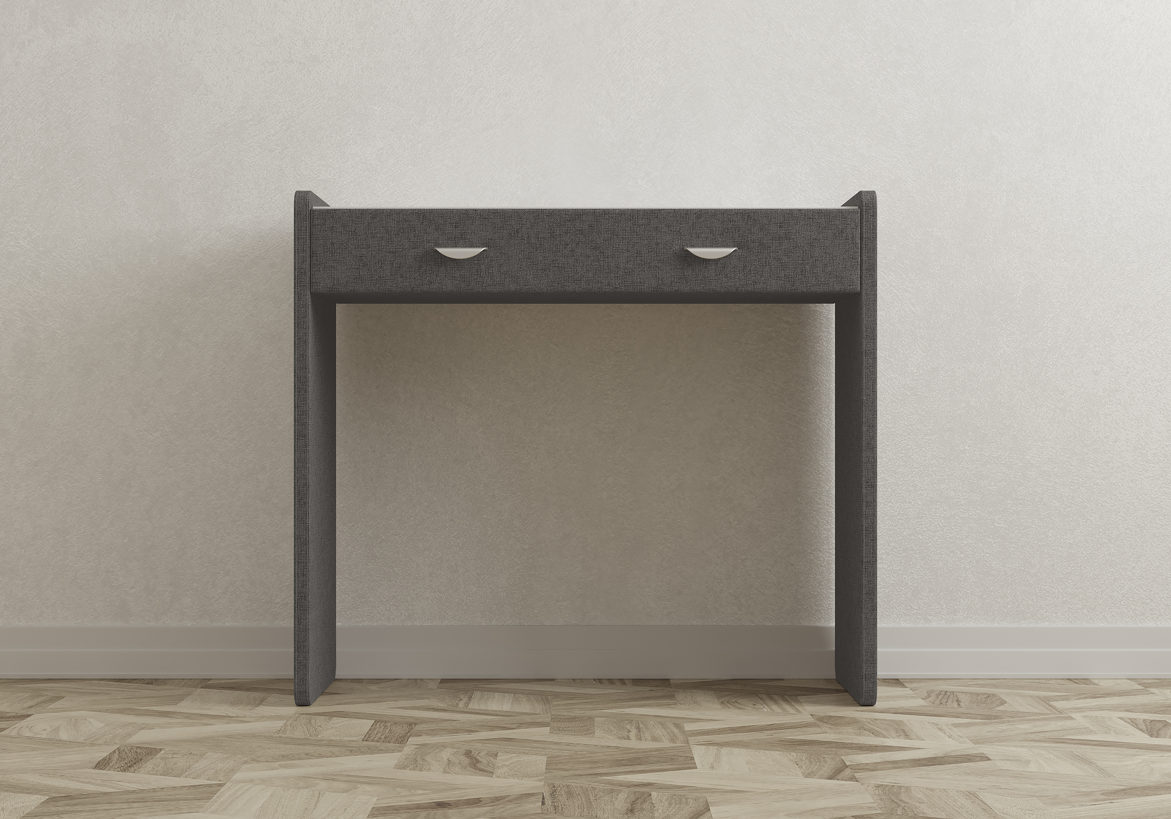 Туалетный столик в мягкой обивке гармонично впишется в любой интерьер. Для удобства использования и продления срока эксплуатации, рекомендуется использовать стеклянную накладку. Накладка используется в качестве столешницы для тумбы и защищает ее от повреждений и загрязнений.
