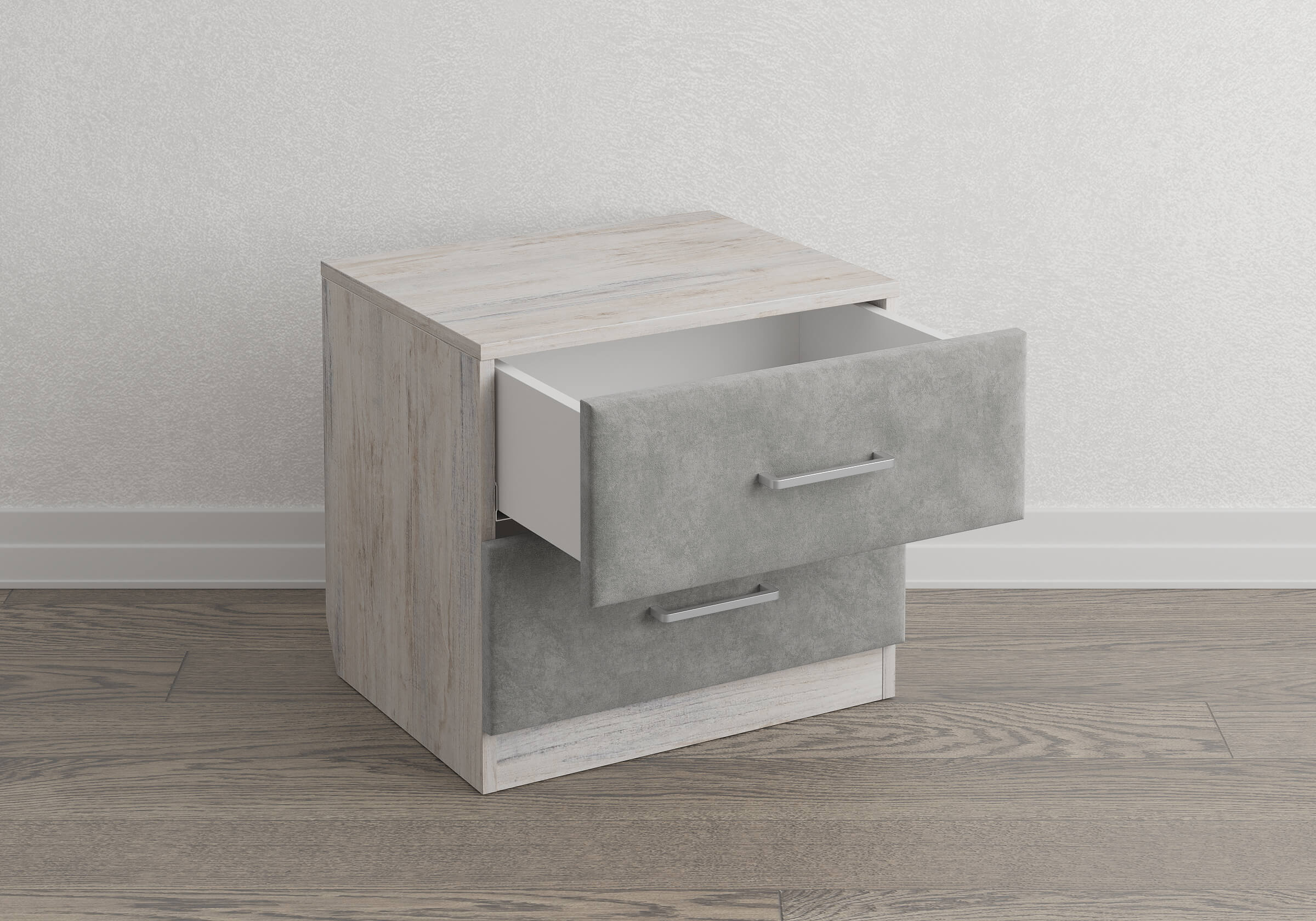 Элегантная комбинированная тумба, сочетающая в себе лаконичность ЛДСП и уют мягких фасадов ящиков, обтянутых тканью. Конструкция тумбы предусматривает два вместительных выдвижных ящика с направляющими скрытого монтажа и доводчиками. Корпус из ЛДСП гарантирует долговечность и устойчивость к механическим повреждениям, а мягкие фасады в ткани и изящные металлические ручки добавят уют. Большое разнообразие текстур и цветовых решений для гармоничной интеграции в любой интерьер.