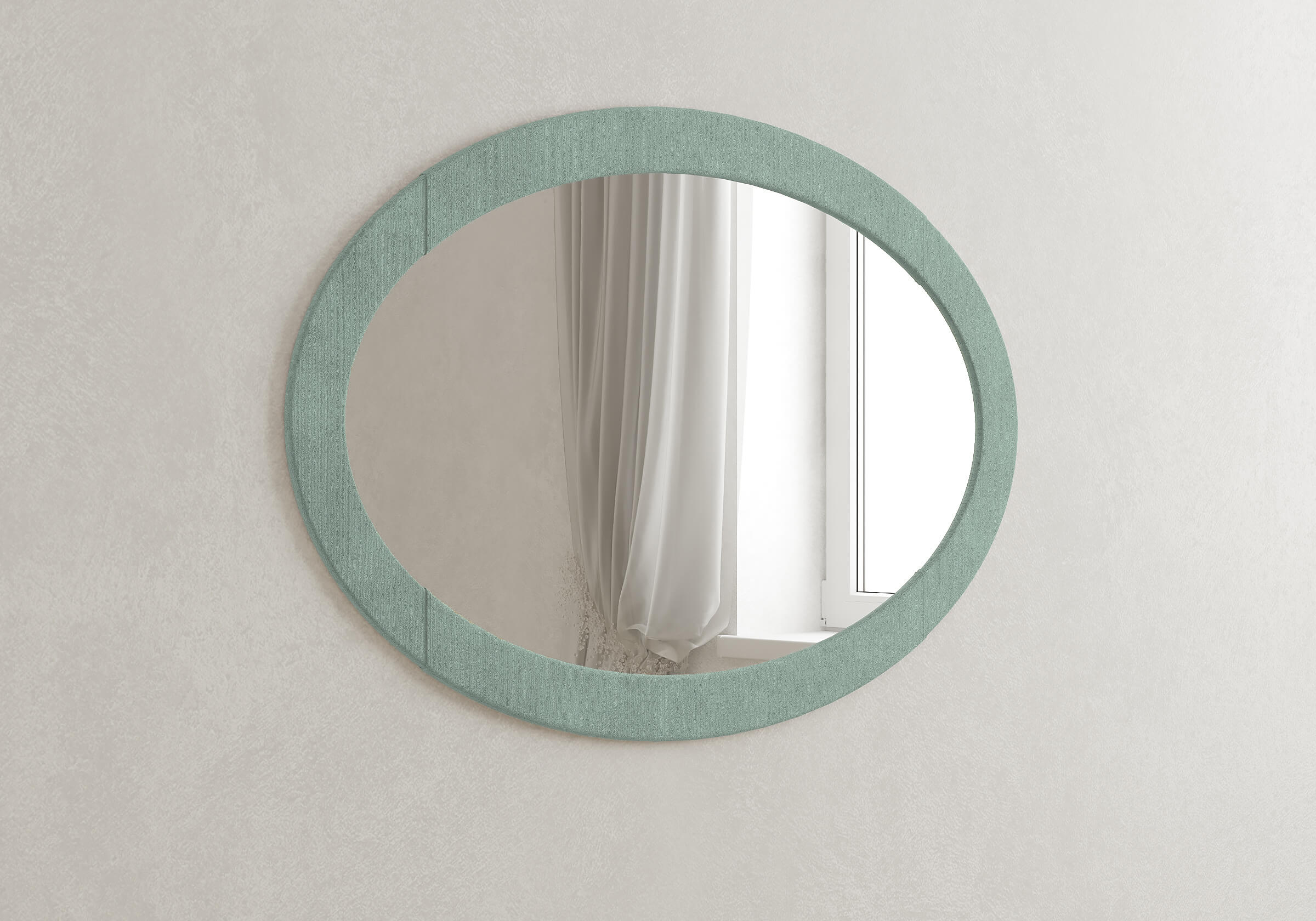 Зеркало выглядит с одной стороны стильно, а с другой – уютно. Все благодаря раме. Она объемная, тканевая, в спальне на стене выглядит очень красиво. Чистить зеркало очень удобно.