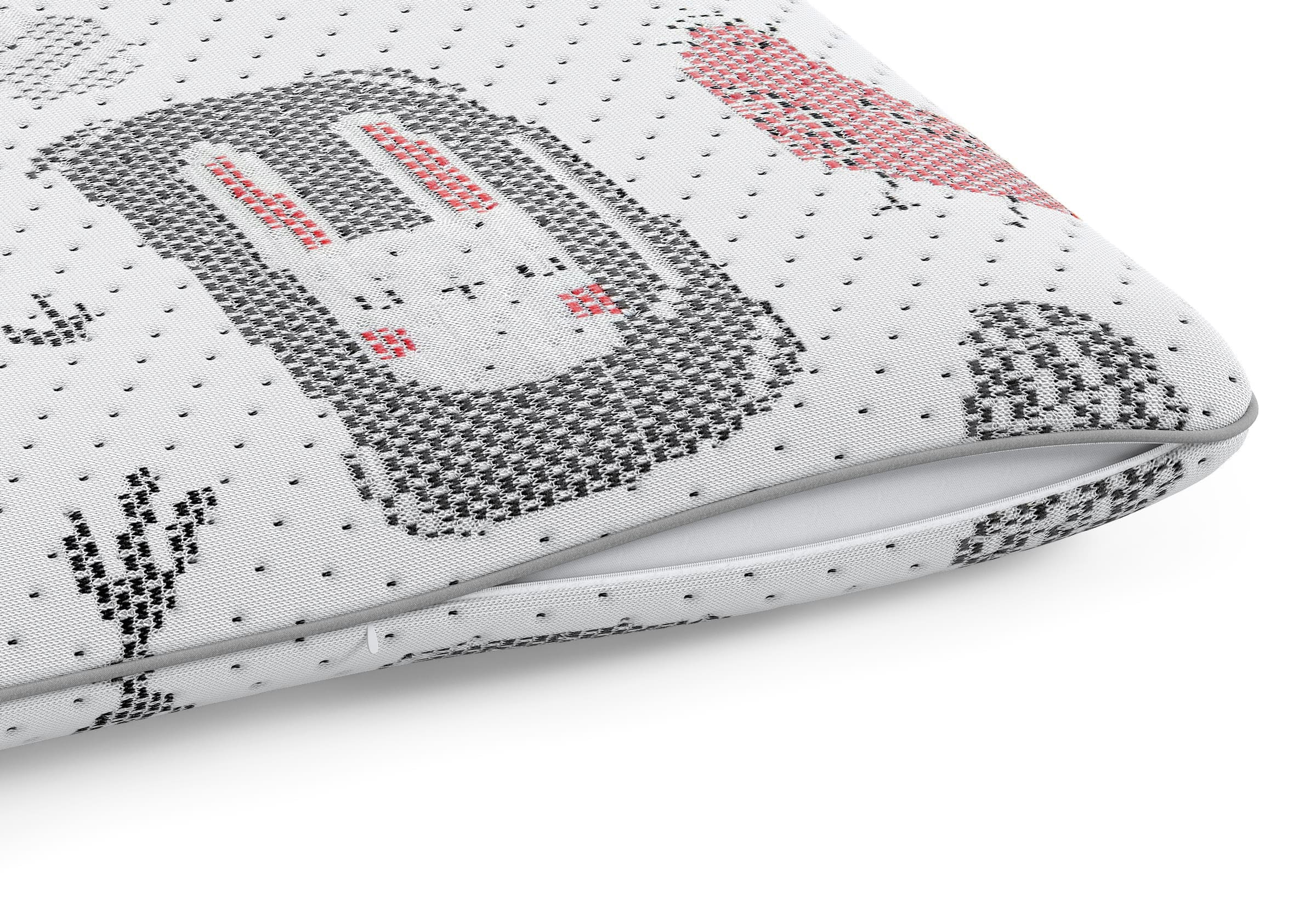 Внешний чехол выполнен из нежного трикотажа и поддерживает естественную циркуляцию воздуха, а дополнительный внутренний чехол защищает наполнение подушки от загрязнений и поверхностных повреждений. Внешний чехол можно снять и постирать, поэтому с ним легко поддерживать свежесть спального места.