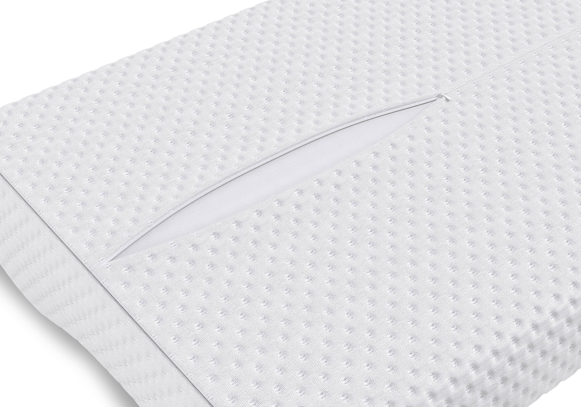 Внешний чехол выполнен из мягкого трикотажа и поддерживает естественную циркуляцию воздуха, а дополнительный внутренний чехол защищает наполнение подушки от загрязнений и поверхностных повреждений. Внешний чехол можно снять и постирать, поэтому с ним легко поддерживать свежесть спального места.